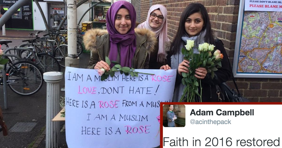 With waves of Islamophobic acts occurring around the globe, a group of Muslim women in London distributed roses to prove that love always trumps hate.