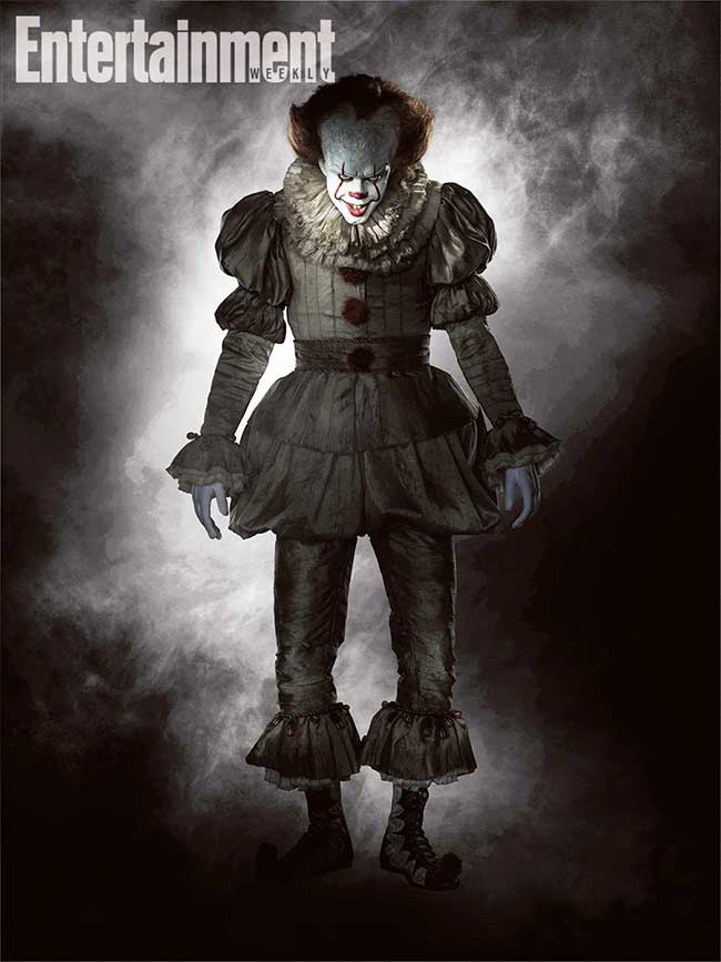 Entertainment Weekly reported that Muschietti received the services of Emmy-winning costume designer Janie Bryant (Deadwood, Mad Men), and what resulted is a costume that was influenced by the Medieval, Renaissance, Elizabethan, and Victorian eras, according to the magazine. Bryant told EW, “The costume definitely incorporates all these otherworldly past lives, if you will. He is definitely a clown from a different time.”
