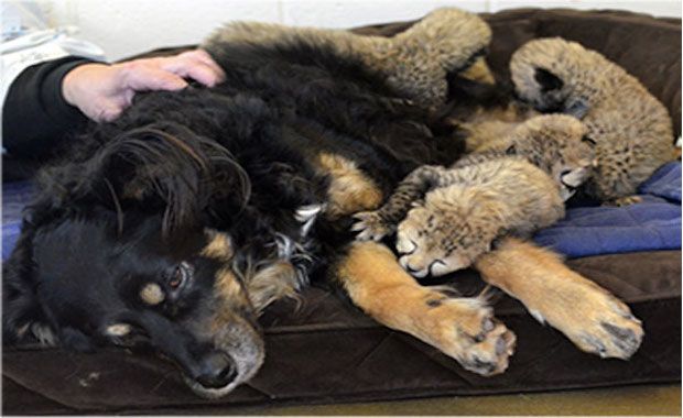 An Australian Shepherd Dog Helps Raise Orphaned Cheetah Cubs After Mom Dies
