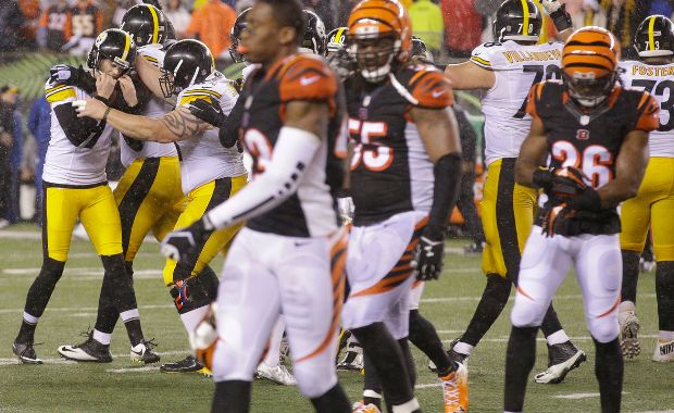 On Saturday night, the Cincinnati Bengals held a late fourth-quarter lead and seemed to put the finishing touches on their AFC North rival Pittsburgh Steelers when Vontaze Burfict intercepted Pittsburgh with 1:36 left in the game. But on the following play, the Bengals’ Jeremy Hill coughed up the ball and gave it right back to the Steelers.