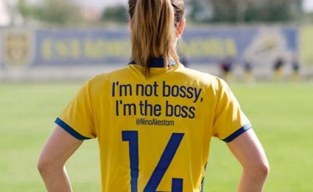 Folkesson wrote (translated), “I have chosen to highlight the quote “I’m not bossy, I’m the boss” from @NinaAkestam to urge all women to dare to take place, both on and off the pitch. #IDittNamn #swewnt.”