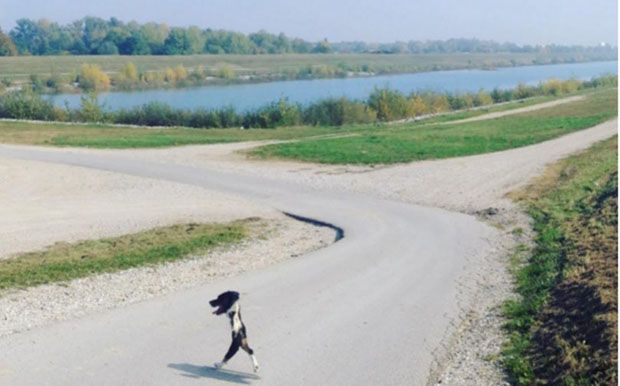 “Two roads converged at a road and, I took the one less traveled by. And that has made all the difference. Because my torso disappeared.” — Robert Frost. I am sorry that 75 percent of your body is gone buddy, but I will still probably use this scenery shot as my laptop background.