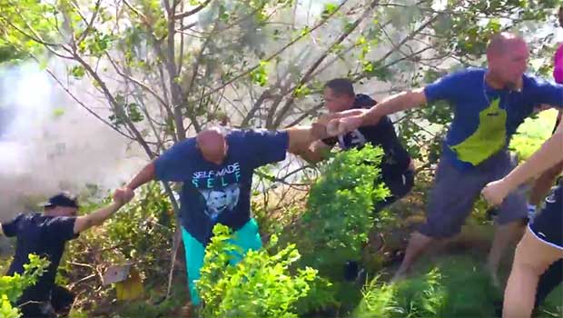 After an SUV had careened over a steep embankment following a multi-vehicle collision near Palm Bay, Florida, the vehicle burst into flames. A group of witnesses quickly formed a human chain to pull the driver out of harm’s way, with police joining the effort as soon as they arrived on scene.