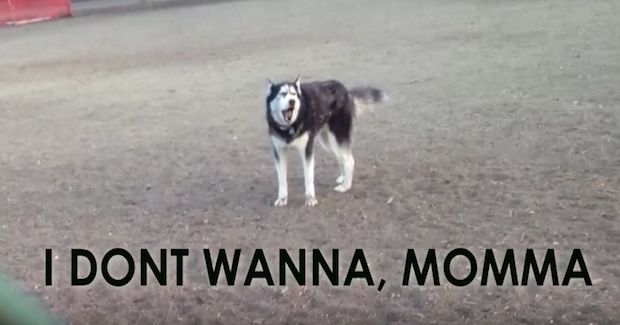 The video gets even funnier when captions are added to the bottom of the screen to “translate” the husky’s howling into English.