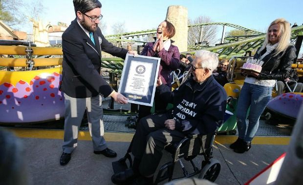 “On the 6th of April 2017 I will turn 105 years old so I’ve decided instead of sitting back to read my second letter from the queen I’d rather raise a little more money for a well deserved charity and also see if I can gain my second Guinness World Record by attempting to be the oldest person to ride a roller coaster,” Jack Reynolds wrote on the JustGiving page set up by his grandson Shane Spencer. “All proceeds will go to helping fund our local air ambulance as they do such a great job and require as much money to run as possible. They are Life Savers & Every Penny Helps.”
