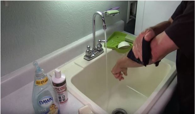 Jim Brauker also shares that it is very important to use cold water in this situation. If you use warm water, it opens your pores allowing the oils to get inside of your skin.