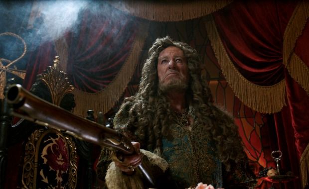 Geoffrey Rush returns as Captain Barbossa who’s mellowed a bit — but nonetheless still skanky — now commandeering the late Blackbeard’s ornate vessel.