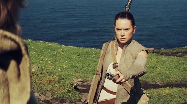 We just saw more “Star Wars: The Last Jedi” footage. In it, Luke asks Rey, “Who are you?” Then we see her deftly handle a lightsaber.