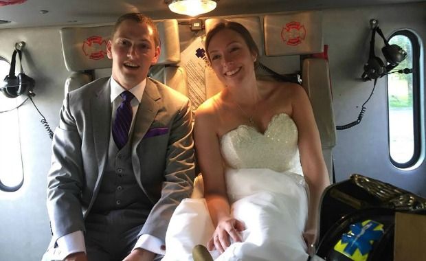 Volunteer Firefighters Chauffeur Bride and Groom to Reception After Party Bus Catches Fire
