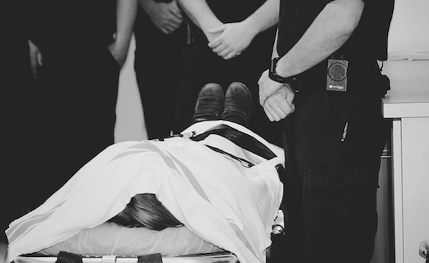 The now viral photo shows a teenager on a gurney covered with a white cloth as several emergency responders surround his body.