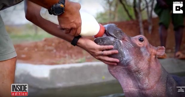 “The baby hippo had been observed for a few days to ascertain that it was, in fact, an orphan,” A DSWT spokesperson said to Inside Edition. “Given the remoteness and inaccessibility of the area, rescuing Humpty certainly presented a challenge. But a challenge we had to rise to, as, without intervention, it was evident she was going to die.”