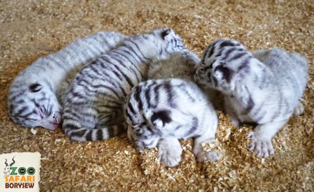 In a press release, the zoo bragged, (translated) “For the first time in the history of zoology born babies up to FOUR! So far, anywhere, in any of the zoos in the world, they not happened so fantastic birth of white tigers. So this is enormously pleased that we repeat it again: the ZOO SAFARI Borysew the first time in history, were born as many as four white tigers in one litter.”