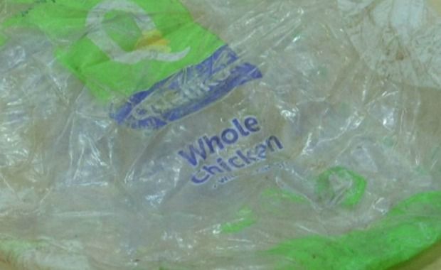 In this footage from Sky News, you can see the whale fork-lifted from the beach and the aftermath of assorted types of plastics cut out of its stomach. Thankfully, we have been spared the dissection. One of the more curious plastic items had a label on it which read “whole chicken.”