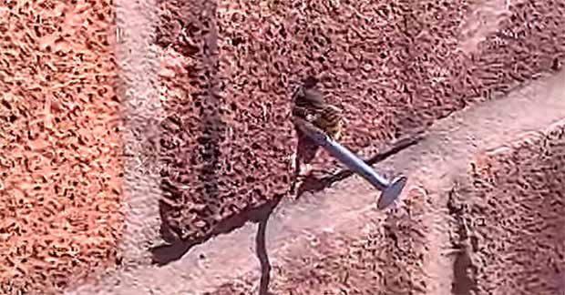 Watch this “bionic” honey bee as it lands against a wall and somehow pulls a nail straight out of the brick.